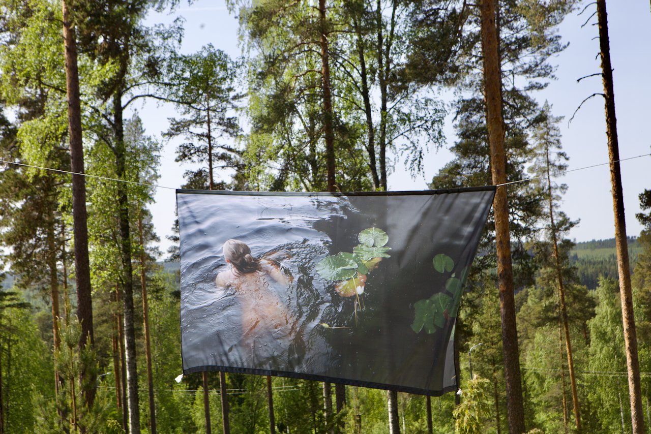 Press release from Konnevesi Museum: photographer Sanna Elina Ahtisaari’s environmenmtal installation Ancestors creates a fantastical dimension that gives form to the eternal flow of time. The worl will be on view at the Anclus Slope of the Konnevesi Museum. Inspired by the ancient Ancylus Lake that once surged through the Konnevesi region 9000 years ago, the installation is situated on a former shoreline. It features women immersed in water -swimming, floating- evoking a timeless connection between past and present